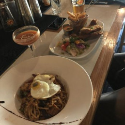 The Blend Kitchen + Bar also offers a refreshing Olympia's Greek Salad and a unique Chicken Hawaiian Salad for those looking for lighter options. If you're in the mood for a hearty meal, the Blend Burger with their signature burger sauce is a must-try, or opt for the Veggie Burger for a plant-based alternative.